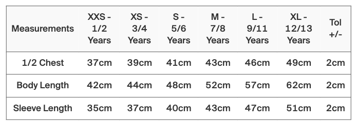 | Youth sizes | 5-6yrs, 7-8yrs, 9-11yrs, 12-13yrs |