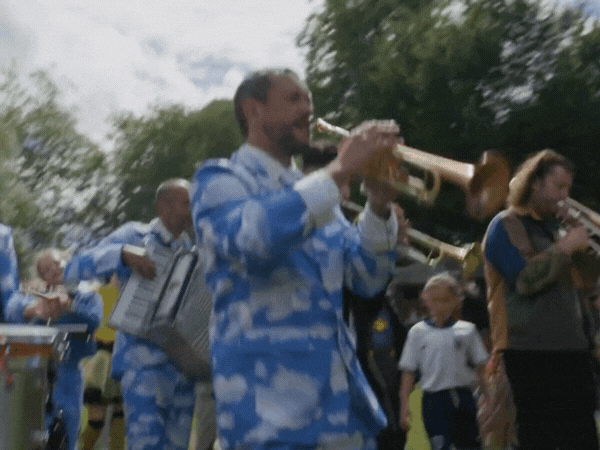 A celebratory brass band parade of flamboyance, fun & frolicks
